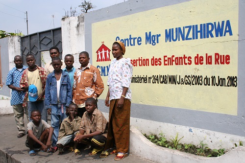 Le Centre Monseigneur Munzihirwa (CMM, en sigle) est une structure d’hébergement et d’encadrement des « enfants dits de la rue » et dont l’objectif est leur réinsertion familiale et/ou socioprofessionnelle. Initié par le Père Nzuzi Bibaki et encouragé par le Père provincial d’alors, le Père Marcel Matungulu Otene, le CMM a été fondé en août 1995 comme une réponse de la Compagnie Jésus au phénomène « enfants de la rue », phénomène très ancien, qui se développe chaque année avec une acuité toujours plus grande dans la ville de Kinshasa. Le centre a commencé comme « Projet de Réinsertion des enfants de la rue » au mois d’août 1995. C’est en 1997 qu’il a été rebaptisé Centre Monseigneur Munzihirwa pour honorer la mémoire de Mgr Christophe Munzihirwa, S.J., archevêque de Bukavu et pasteur soucieux du sort des pauvres et des marginalisés, assassiné le 29 octobre 1996. Le centre s’est doté d’une personnalité juridique depuis sa reconnaissance comme association sans but lucratif (ASBL) par l’arrêté ministériel n° 264/CAB/MIN/ J&GS/2003 du 10 janvier 2003. Il a son siège social sur l’avenue Doruma n°A14 au quartier Matonge III dans la commune de Kalamu. Dès son commencement, le CMM s’est assigné comme objectif la réinsertion des enfants, suivie de la scolarisation ou de l’apprentissage des métiers avec l’appui du centre. Les enfants réinsérés sont placés soit dans leurs familles biologiques et/ou élargies, soit dans les familles d’accueil selon les causes de leur départ ou leur renvoi de la famille. Le centre supporte les frais de scolarité de 50 enfants dans différentes écoles de la ville et l’apprentissage des métiers de vingt-cinq jeunes tout en maintenant un contact régulier avec leurs familles, les écoles et les centres d’apprentissage. Tout en hébergeant les enfants à réinsérer, le centre héberge aussi un certain nombre d’enfants qui ne sauront être placés dans aucune famille parce qu’accusés de sorcellerie – et donc responsables de certains malheurs qui ont frappé leurs familles. Ces enfants restent hébergés au centre ; certains d’entre eux vont à l’école ou à dans un centre de formation à partir du CMM, tandis que d’autres suivent des cours de remise à niveau et de rattrapage sur place. Les accusations de sorcellerie sont un obstacle majeur au travail de réinsertion familiale. Elles sont la cause des blessures profondes dans la vie des enfants dits de la rue. Malheureusement, certains pasteurs des églises dites de Réveil exploitent le phénomène « enfant sorcier » pour diviser davantage les parents de leurs enfants. La complexité du travail d’encadrement des enfants de la rue a conduit le centre à s’adapter aux circonstances du temps et des personnes afin d’être capable d’offrir une réponse appropriée à ce phénomène qui continue à déchirer la société kinoise. C’est ainsi que le centre a ouvert un atelier d’apprentissage de la menuiserie et d’ajustage et soudure au quartier Cogelos, derrière le plateau des professeurs de l’Université de Kinshasa. Cet atelier est aussi ouvert aux autres jeunes désœuvrés de Cogelos et de Kindele afin de prévenir la délinquance juvénile. Malheureusement, suite à la rupture de la fourniture en énergie électrique depuis le mois d’août 2010, l’atelier fonctionne à un rythme minimal. Dans le but d’élargir ses horizons, le centre a eu l’ambition de rayonner au niveau du quartier où il est situé pour aider la société à changer son image des enfants dits de la rue. Cela se fait à travers l’organisation des activités sportives et la sensibilisation sur le VIH/ SIDA et les infections sexuellement transmissibles. Certains jeunes du CMM ont reçu la formation de pairs éducateurs en matière de sensibilisation sur le VIH/SIDA et les infections sexuellement transmissibles. Le centre a ouvert un club anti-Sida pour sensibiliser les autres enfants de la rue et les jeunes du quartier. Cette sensibilisation est faite par les jeunes du centre sous la supervision des éducateurs sociaux.